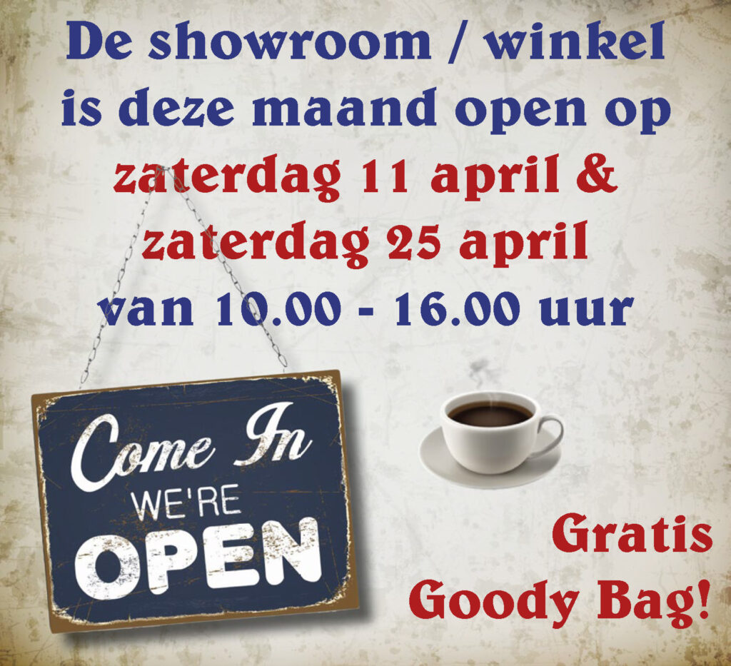 DE SHOWROOM IS ELKE 2E en 4E ZATERDAG VAN DE MAAND OPEN VAN 10.00-16.00 UUR (OF OP AFSPRAAK - BEL 06- 33 711 801)